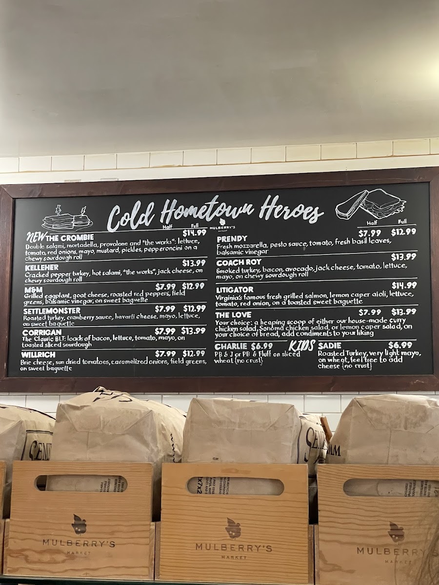 The menu at Mulberry's Market offers a selection suited for convenience store, deli, and grocery needs, featuring a variety of hot and cold sandwiches available in full or half sizes. Visitors can choose from an assortment of drinks including coffees and other beverages, alongside snacks and light sides. Bakery items such as starter bakery goods are also part of the offerings.